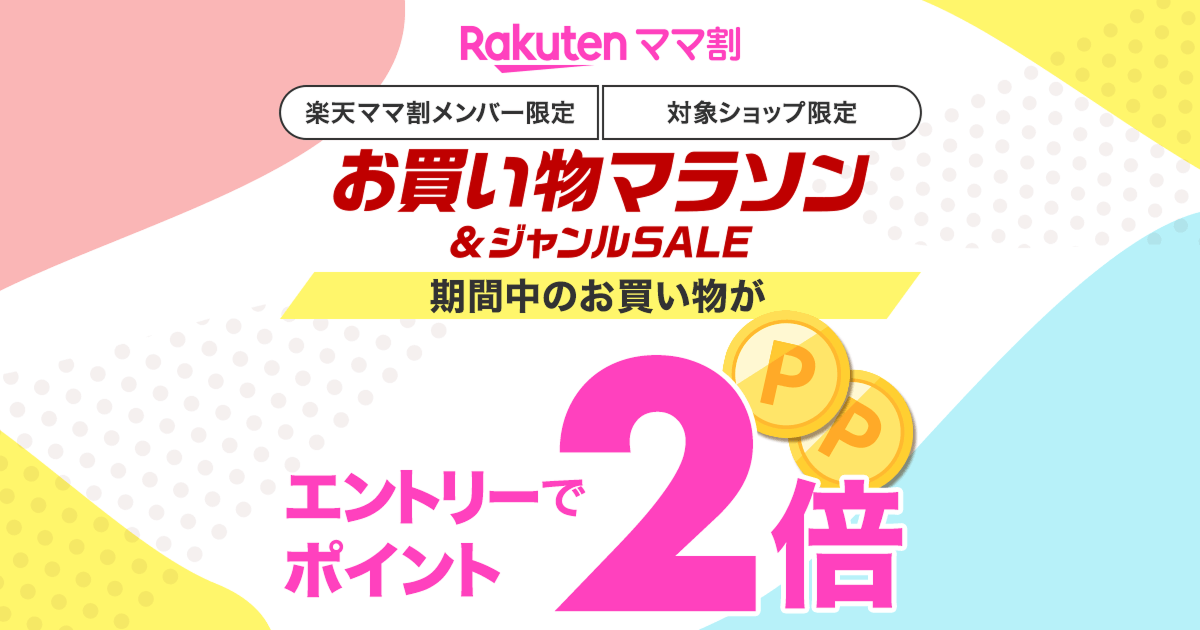 楽天ママ割メンバー登録&エントリーでお買い物マラソン期間中、対象ショップ限定でのお買い物がポイント2倍!欲しかったアイテムをおトクにゲットしよう!