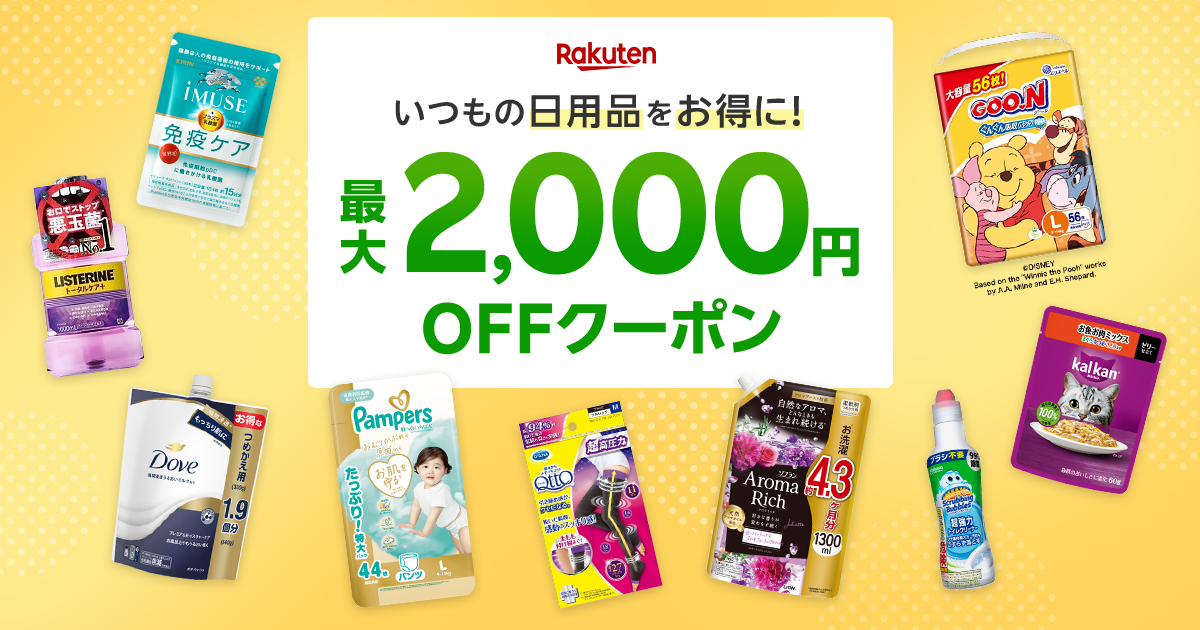 【楽天市場】いつもの日用品をお得に!最大2,000円OFFクーポン