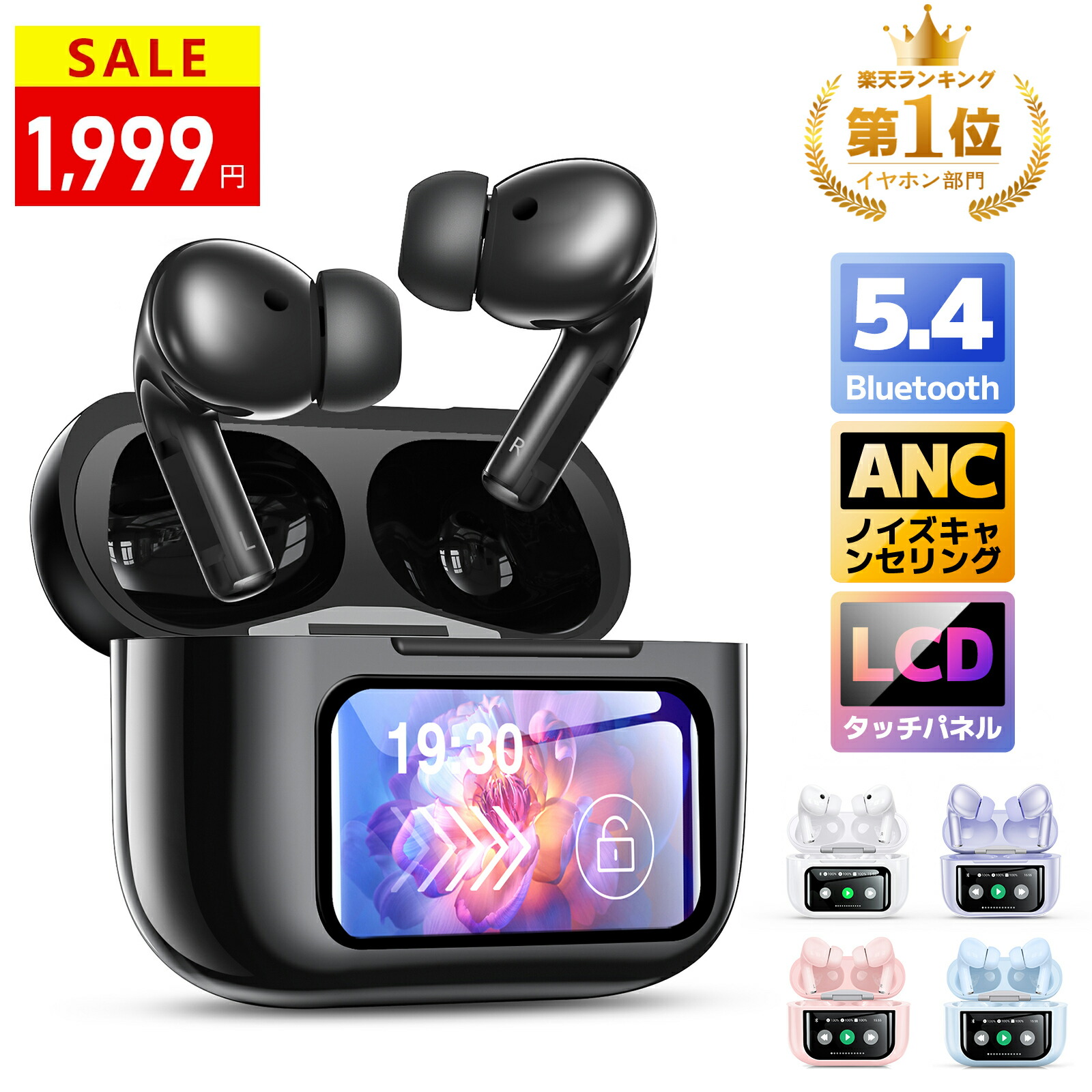 【楽天市場】【楽天1位】\89%OFF★クーポンで1,999円/ワイヤレスイヤホン 液晶イヤホン・ANC対応【2025年最新型・多機能タッチスクリーン】イヤホン bluetooth 5.4 Bluetooth イヤホン ノイズキャンセリング 32H音楽再生 Hi-Fi カナル型自動ペアリング IPX7防水 iPhone Android:META-X