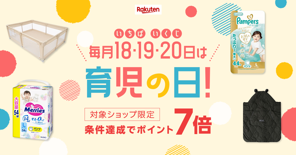 毎月18・19・20日は、楽天市場 育児の日!お得なベビー・キッズ用品をさらにポイントアップでご用意し、パパママの日頃の育児を応援します。