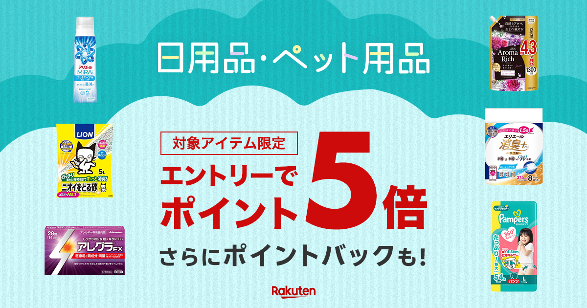 【楽天市場】日用品・ペット用品エントリーでポイント5倍!さらにポイントバックも