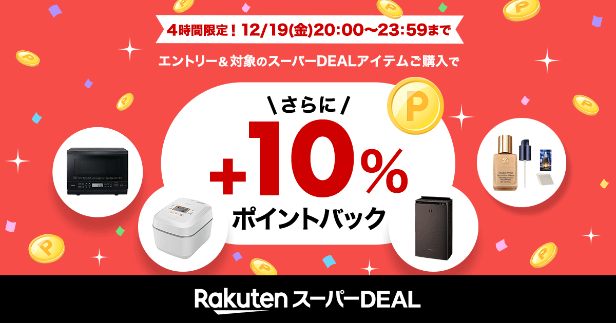 【楽天市場】楽天スーパーDEAL|4時間限定!エントリー&対象のスーパーDEALアイテムをご購入で+10%ポイントバックキャンペーン